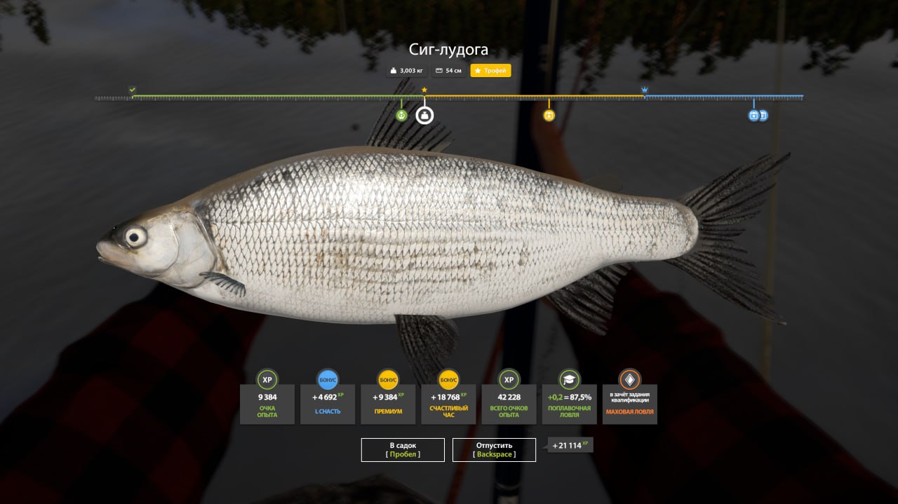 Отличный круглосуточный фарм — 600 монет/час, часто залетают трофеи рипуса и ряпушки. Трофей сига попался на бутерброд личинок паденки и веснянки