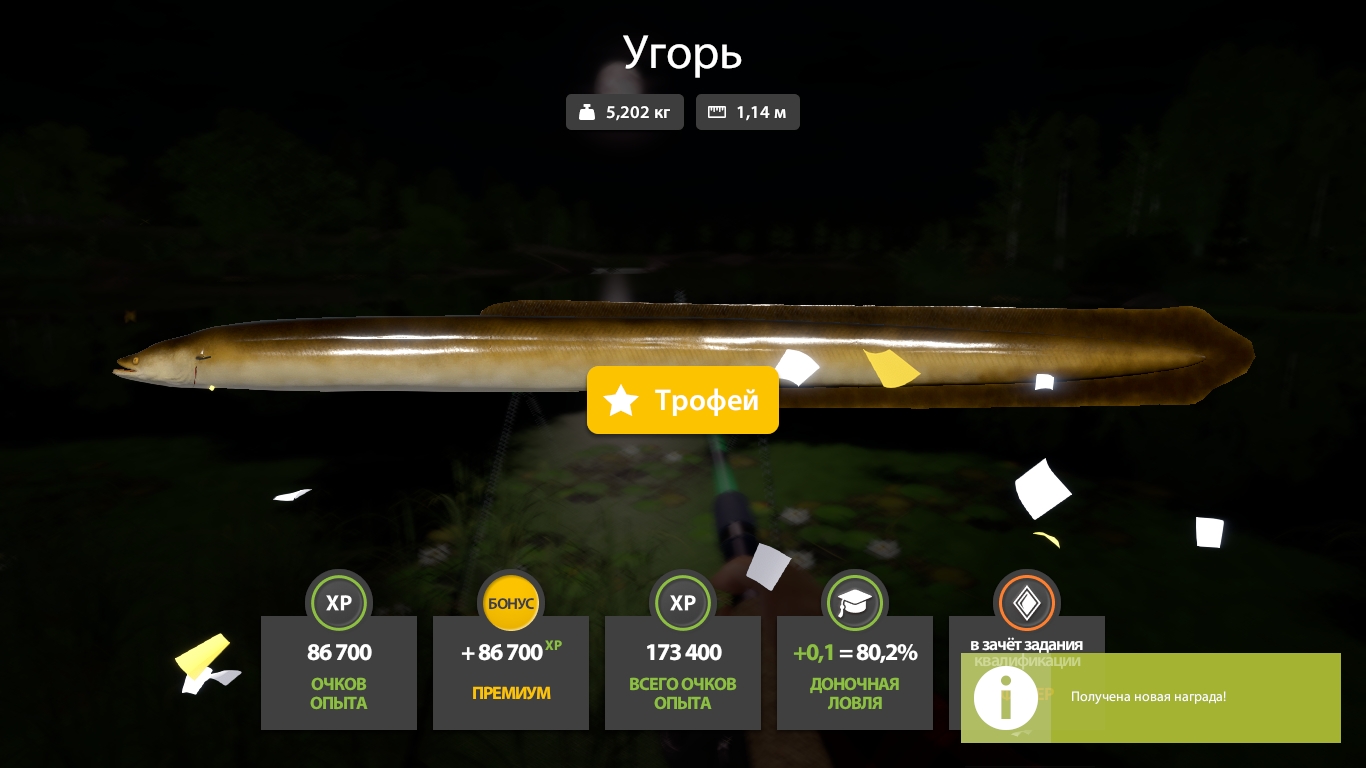 Точка выдает в среднем 3 угря за ночь,первый трофейный угорь